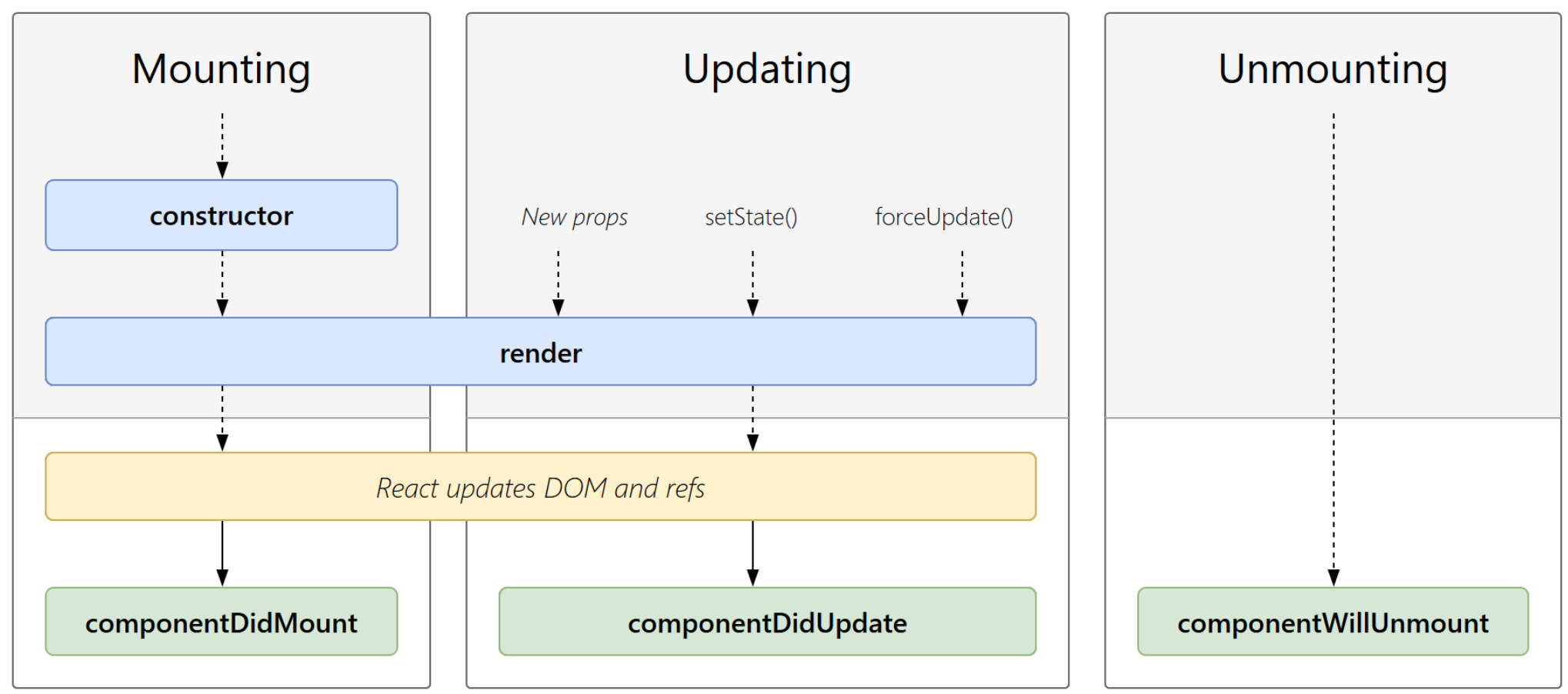 클래스 컴포넌트는 코드가 복잡하고 속도가 느리지만 더 많은 기능을 제공한다. 이에 비해 함수형 컴포넌트는 코드가 간단하고 속도가 빠른 대신, 기능에 제한이 있었다. 어떤 기능의 제한이냐 하면, 아래의 생명주기를 이용할 수 없다는 극한의 단점이었다.