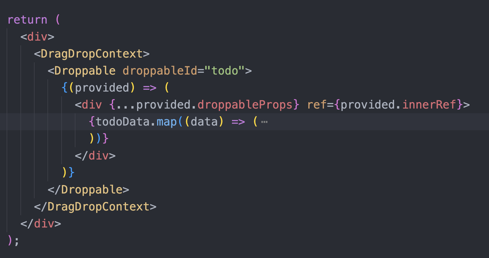 DragDropContext , Draggable, Droppable 의 구조는 다음과 같다.